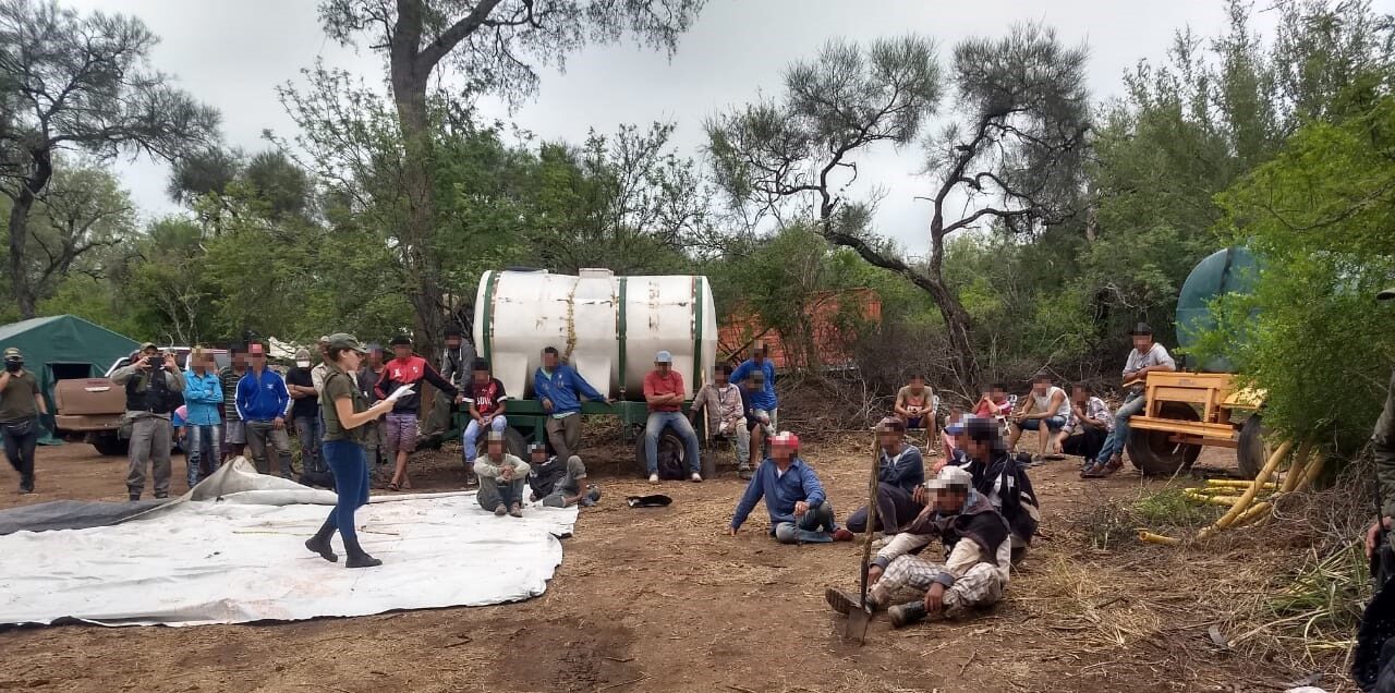 Del operativo intervinieron funcionarios del Programa Nacional de Rescate y Acompañamiento a las personas damnificadas por el delito de Trata de Personas del Ministerio de Justicia y Derechos Humanos de La Nación. En un primer campo observaron a 72 ciudadanos que “estaban en medio de la espesura del monte en pésimas condiciones de higiene, sanitaria y habitabilidad”. En el segundo campo, “encontraron a otras cuatro personas sufriendo la misma situación (entre ellas dos menores)”, según se informó.