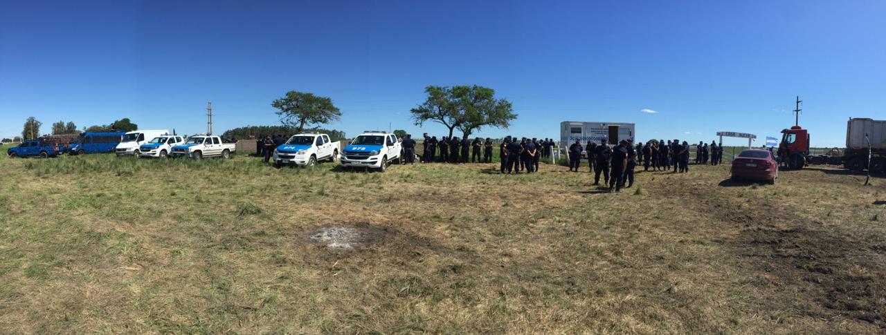 Amplio despliegue de policías para controlar que no pase nada a las cuatro, hora en la que se anunció una movilización de militantes sociales hasta Casa Nueva, el campo de la familia Etchevehere. Dolores ya avisó a algunos colegas que no saldrá a la tranquera. pic.twitter.com/VnT1fFJlXX