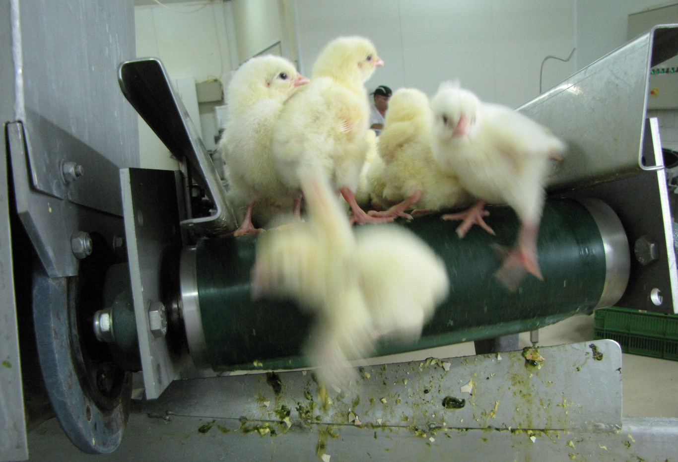 En los establecimientos del mundo más desarrollado, cuando los pollitos salen del cascarón una persona entrenada en la técnica de identificación de sexo separa a los machos y las hembras. Los machos se descartan y “se arrojan en una especie de licuadora”. Es lo que suele hacer la gran industria brasileña.