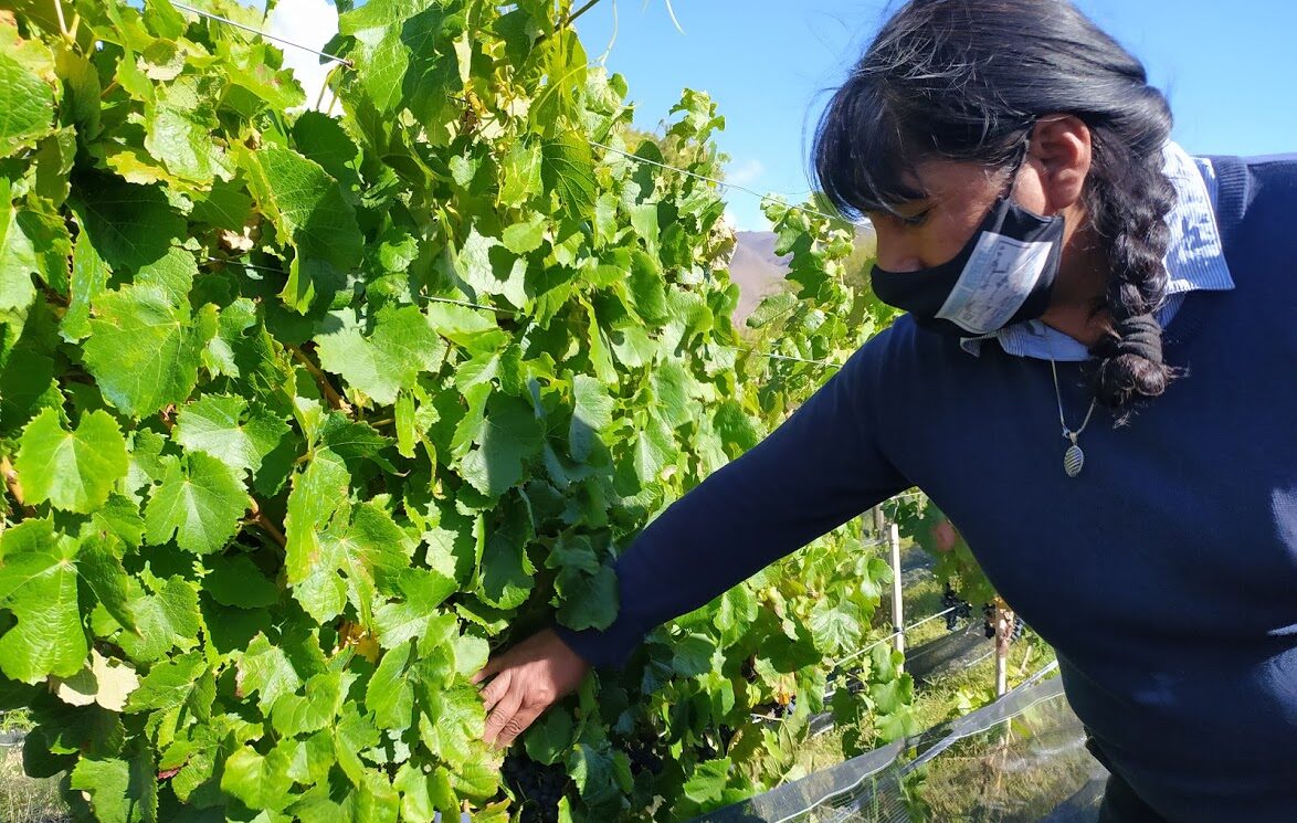 La bodega Viñas del Perchel se preocupa por dejar que las vides se comporten de la forma más natural posible, por lo que se recorriendo el viñedo se pueden encontrar racimos pequeños, de hollejos gruesos y semillas grandes. “Parecen plásticos”, bromeó la jujeña.