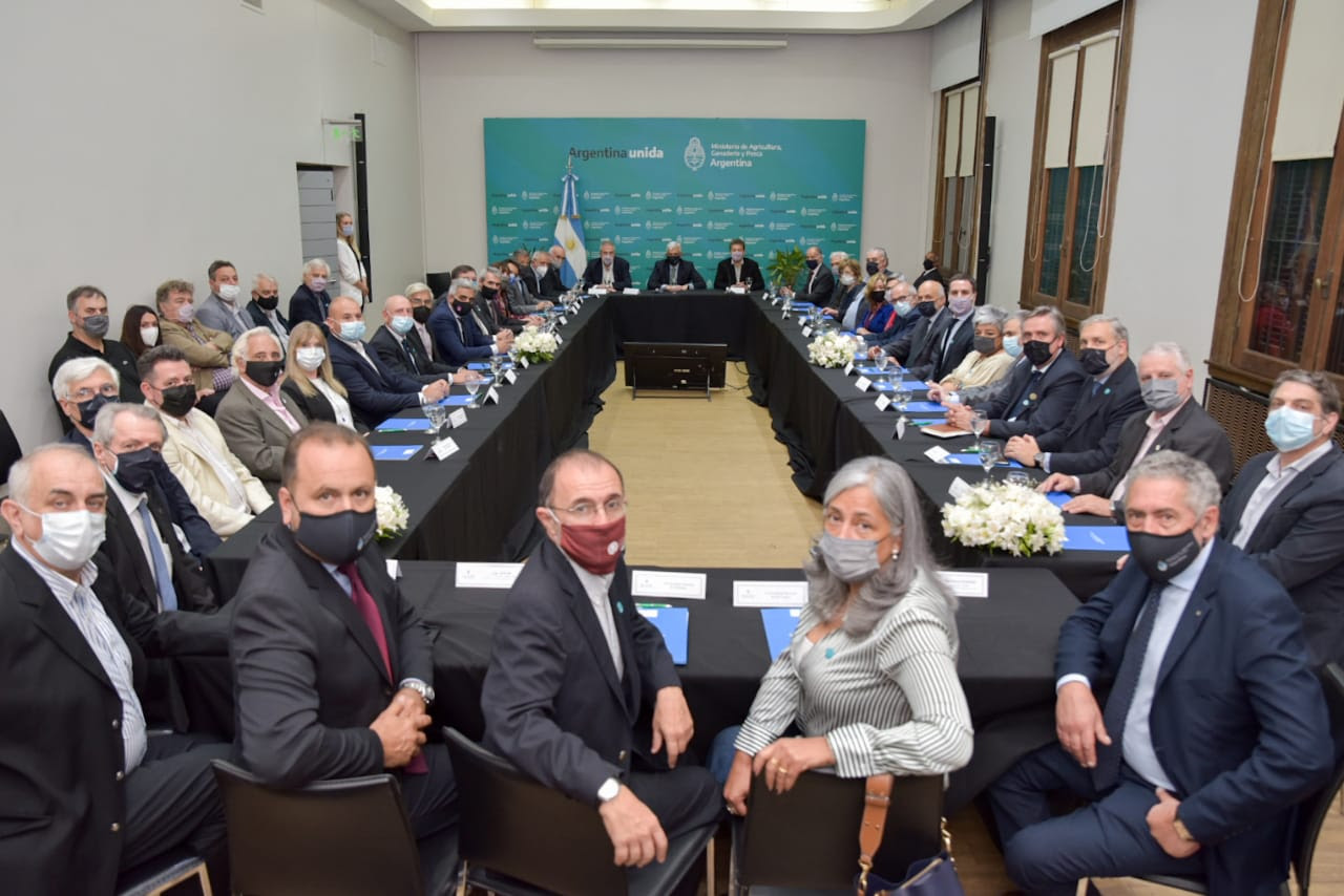 “Luego tuvo lugar el análisis de las tres cadenas trigo, maíz y carne en mesas sectorizadas”, completa la gacetilla de prensa oficial.