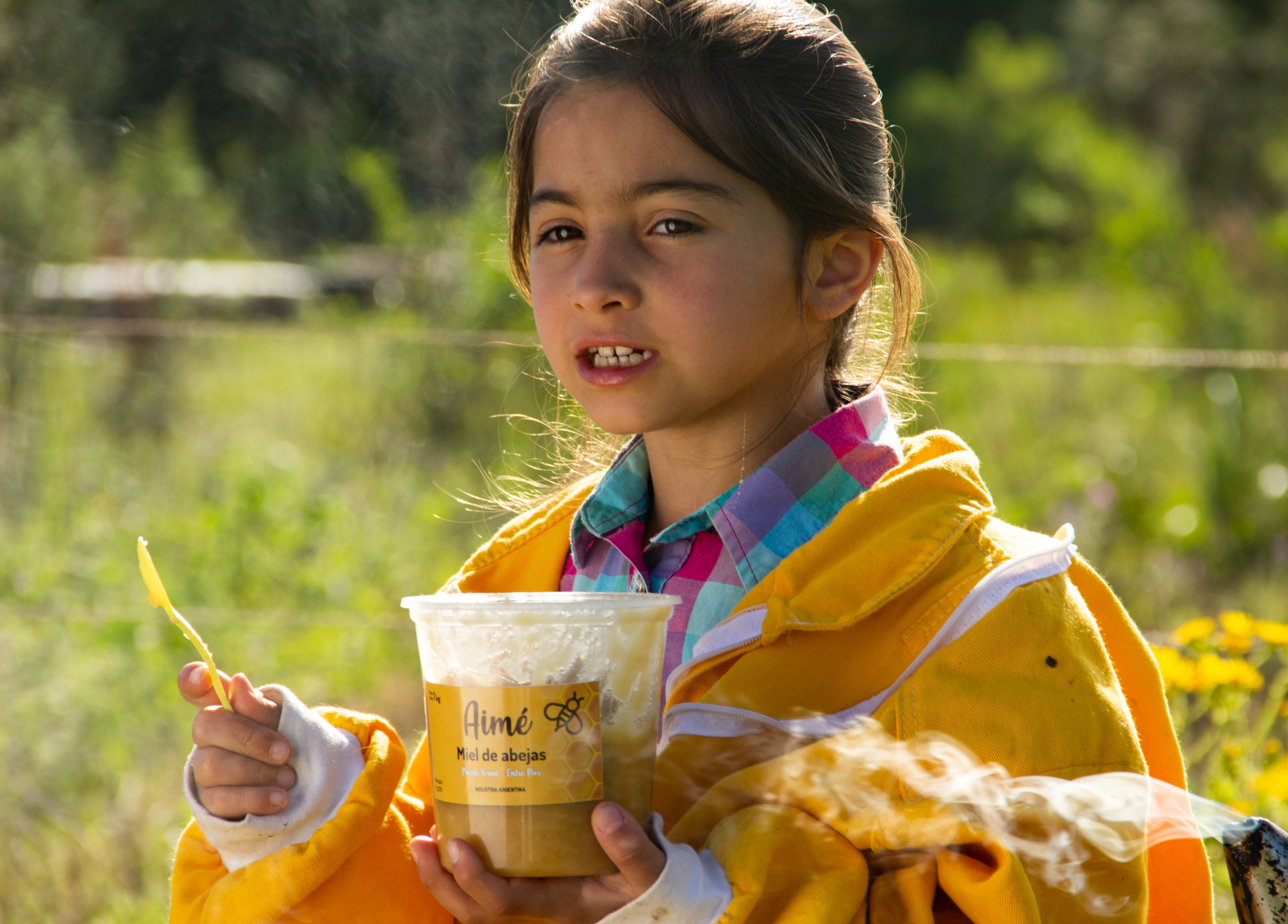 Aimé nació cerca de Puerto Yeruá, un pequeño municipio dentro del departamento de Concordia, en Entre Ríos. En su vida cotidiana, ella acompaña a su mamá y a su papá en todas las tareas que ellos realizan en el campo: la recolección de la miel de las colmenas, la cosecha de las frutas y verduras de la huerta y la alimentación de los animales. Y ese interés fue el puntapié inicial de un proyecto audiovisual que hoy tiene a Aimé como protagonista.