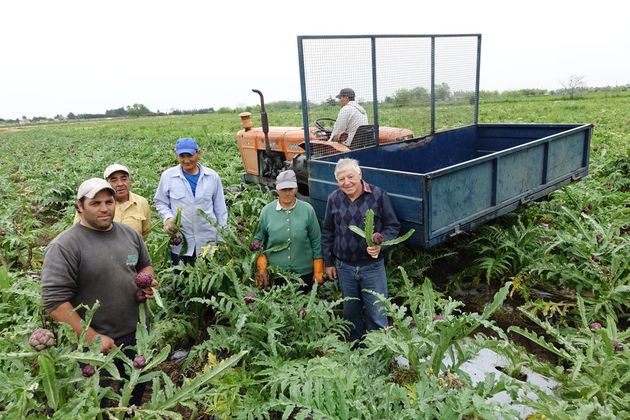 El campo de Adriana y Gonzalo sigue siendo referente de producción para las quintas de la zona. No es una huerta tradicional, sino un campo agrícola ganadero en el que se cultiva el alcaucil, originalmente procedente del Mediterráneo e introducido en América por franceses y españoles y fuente de fibra, sodio, potasio, fósforo, calcio y vitaminas B1 y B3.