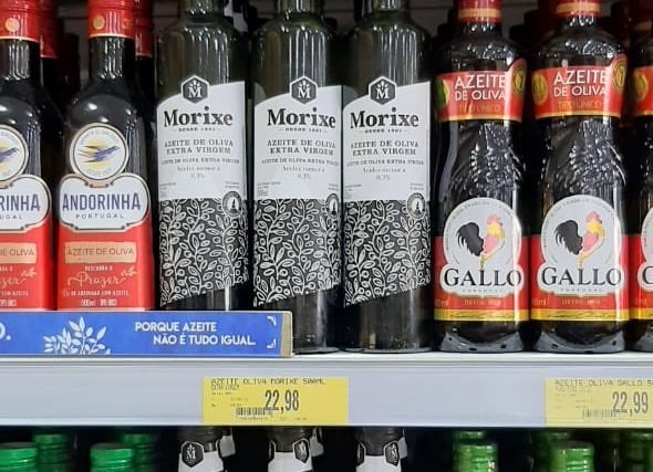 En ese marco, Noel publicó una foto de una góndola del Supermercado Saviski, localizado en la ciudad brasileña de Prudentópolis (Paraná), en el cual es posible ver botellas de vidrio de medio litro de aceite de oliva extra virgen Morixe a un valor de 22,98 reales.