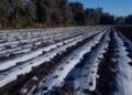 Acerca de la técnica de mulching plástico, Bastit explicó que consiste en un rollo de plástico blanco especial que se coloca luego de hacer el laboreo del suelo, los lomos y de colocar la cinta de riego, para prevenir malezas que en este cultivo suelen ser agresivas. Además, el hecho de colocar un mulching y no tener que carpir (desmalezar) favorece también a la sanidad. “Este plástico viene dispuesto en rollos simil bobinas que se extienden sobre el suelo, luego se le hacen agujeros y en esos agujeros es donde se planta el cultivo”, dijo.