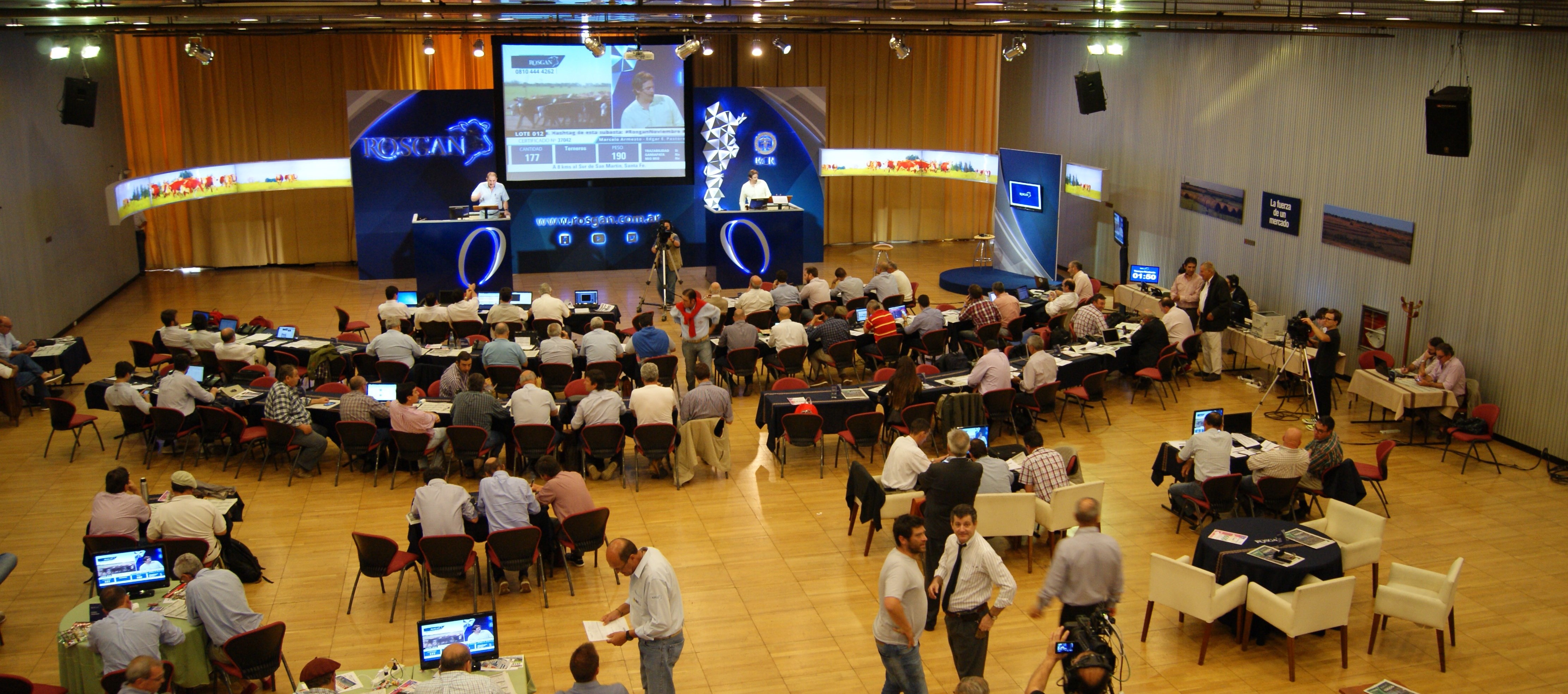 Bichos de Campo fue hasta el estadio donde el Rosgan juega de local, porque a veces también lo hace de visitante en exposiciones como la Expoagro o la Agroactiva. Se trata de un amplio salón de frente vidriado ubicado en el primer piso de la Bolsa de Comercio de Rosario. Se escuchan allí -hasta ahora- los bullicios de la hinchada en los días de remate. Gritan. Hay gritos.