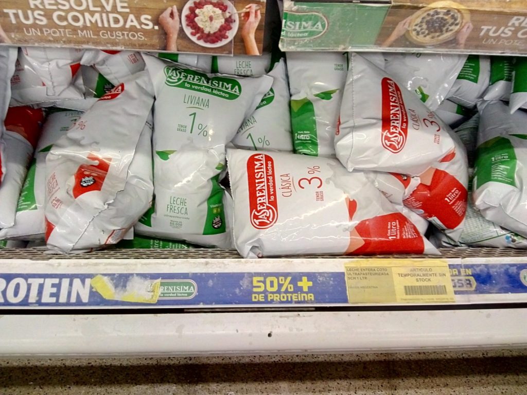 Casi todos los productos de la “canasta láctea” están comprendidos en el congelamiento de facto dispuesto por el Estado nacional (leche fresca en sachet, leche en polvo, queso cremoso, queso pate-grass, yogur firme y manteca). La única excepción es el queso sardo, cuyo elevado valor impide realizar ajustes significativos de precios en la actual coyuntura de crisis económica.