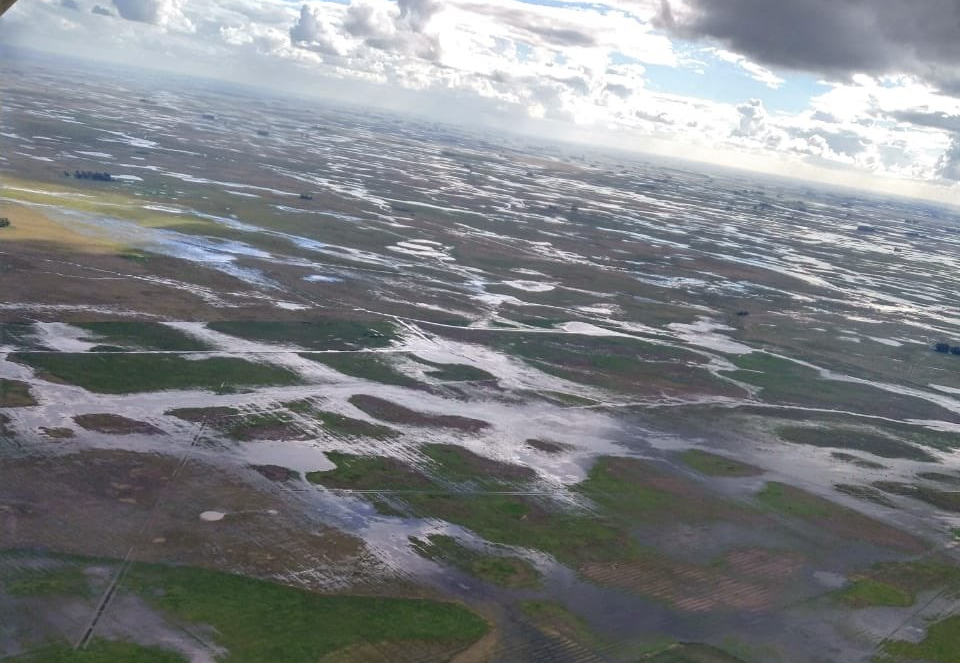 El ingeniero agrónomo azuleño, Horacio “Peco” Repetto, más conocido en Twitter como PecoAz, compartió en la red social algunas imágenes tomadas a caballo y otras sacadas en un vuelo que salió desde la vecina ciudad de Rauch hacia el noreste del partido de Azul, donde se puede apreciar el manto de agua que cubre una vasta zona.