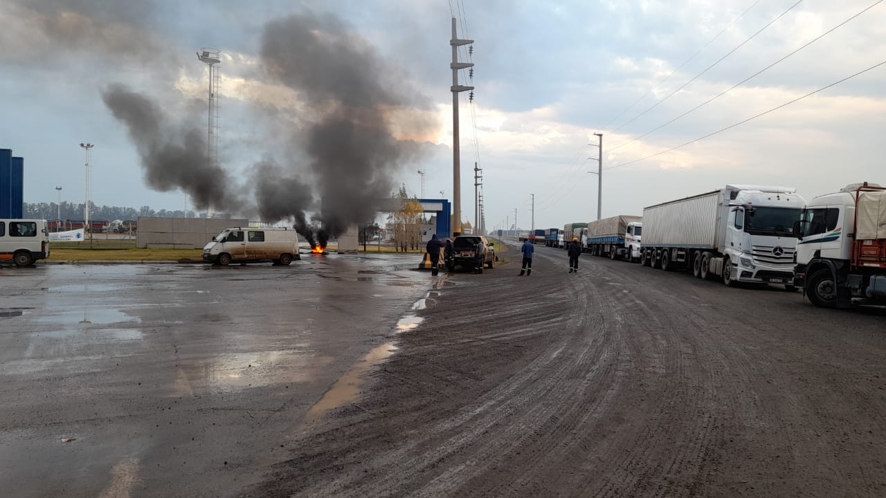 Con carteles y neumáticos quemados, delegados de la Uocra realizan piquetes en los accesos de LDC (Timbués), Asociación de Cooperativas Argentinas (Timbués), Molinos Agro (San Lorenzo), Bunge (San Martín), Cofco (San Martín y Timbués), Terminal 6 (San Martín), Cargill (Quebracho), Renova (Timbués) y Aceitera General Deheza (Timbués).