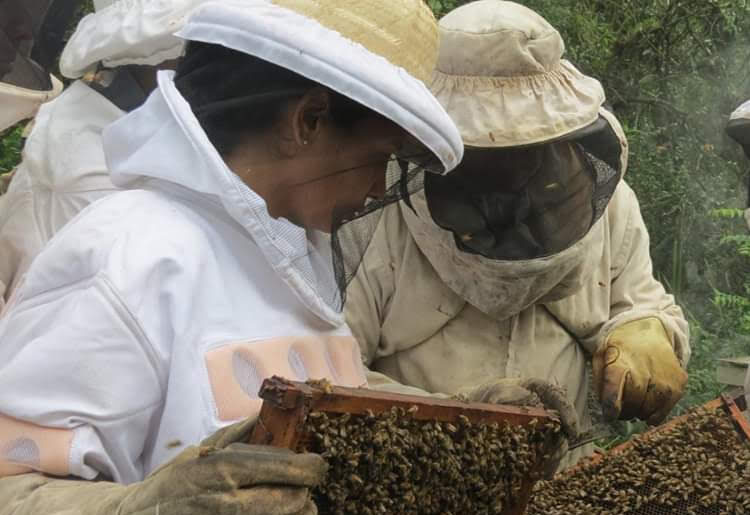 “Queremos que el apiario sea modelo para el desarrollo de eventos, visitas guiadas e investigaciones que permitan a la comunidad, instituciones y entidades públicas o privadas conocer de cerca el potencial de la zona la producción de miel, material vivo y su diversificación”, describe. “También nos permitirá generar ingresos y acompañar a quienes hayan cumplido un periodo de entrenamiento adecuado para la atención de las abejas para iniciarse en la actividad apícola. En relación a las abejas nativas sin aguijón (ANSA) estamos aprendiendo sobre ellas porque es otro mundo”.