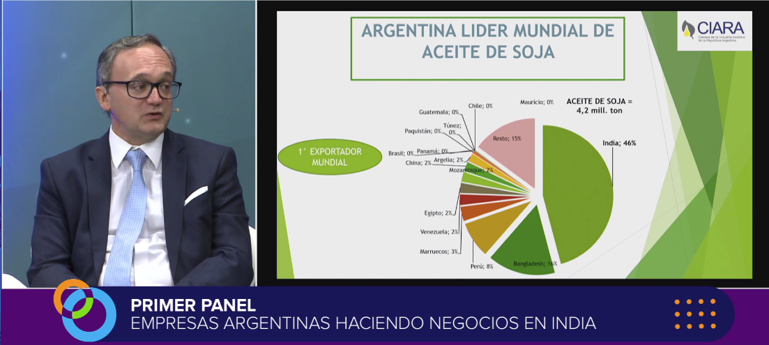 Así lo indicó hoy Gustavo Idígoras, presidente de la Cámara de la Industria Aceitera (Ciara), durante el Primer Foro de Negocios India-Argentina realizado en la ciudad de Buenos Aires.