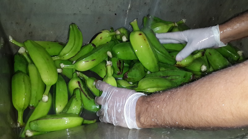 La harina de banana es un alimento muy nutritivo con un alto contenido de vitaminas y nutrientes, hidratos de carbono y minerales. Para la obtención de la harina, las frutas atraviesan varios procesos: pelado, cortado, baño de inmersión (ácidos orgánicos o bisulfitos), secado (estufa convencional y secado solar), molienda y tamizado.