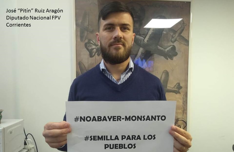 La iniciativa legislativa acompaña una movida en la que ya se han subido varios diputados y hasta artistas ligados con el kirchnerismo (como la actriz Cecilia Roth), que promueve el repudio a los intentos del Gobierno de Cambiemos de “privatizar” las semillas. Los hashtag utilizados por Ruiz Aragón y sus compañeros de bloque son #NoABayerMonsanto y #SemillasParaLosPueblos