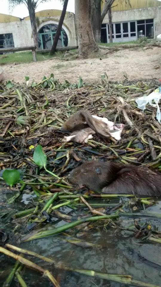 “¿Carpinchos muertos? Producto de la matanza irracional a que estan siendo sometidos por parte de fascinerosos que aprovechan que los animales buscan refugio en las pocas alturas ante el avance del agua. Estos aparecieron en el Club Nautico Reconquista, posiblemente cuando fueron sorprendidos por el patrullar de la Prefectura Nacional. Ya no se trata de cazar para comer sino de exterminación irresponsable”, se quejó Capozzolo en las redes sociales
