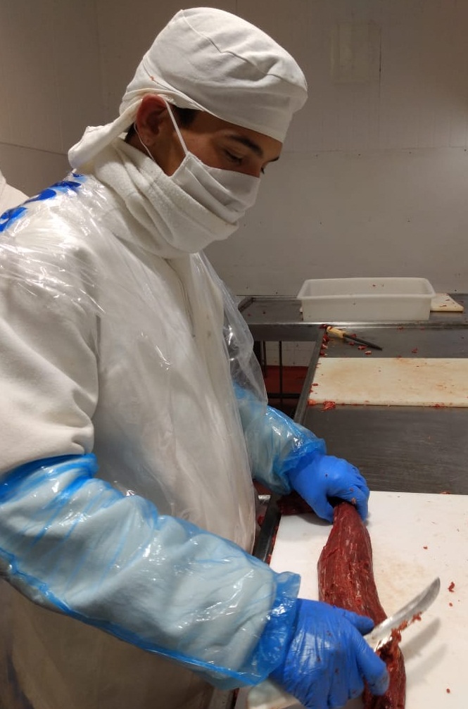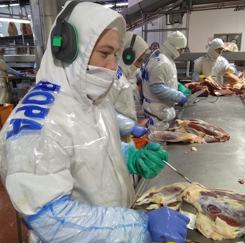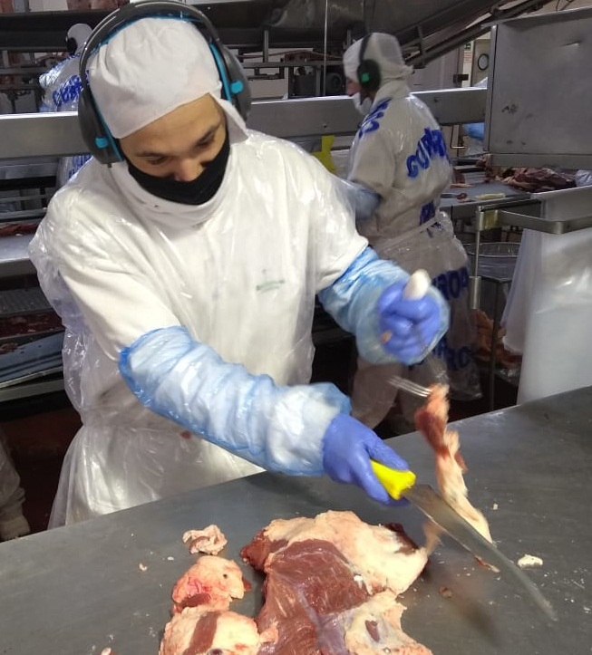 “En la parte de despostado aprendo a afilar el cuchillo y veo como mis compañeros deshuesan los diferentes cortes de carne. Cuando empecé la escuelita no sabía cómo hacerlo y la verdad me sirvió muchísimo”, dijo Camargo. Si bien los maestros enseñan cómo trabajar cada corte de carne, los alumnos también tienen la oportunidad de aprender de los operarios de la línea de producción que lo hacen en tiempo real.