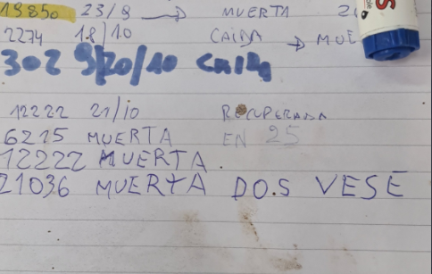 Juan, durante la recorrida que realizó con otros tamberos, se encontró con una pizarra en la cual había una anotación muy particular: una vaca que había “muerto dos veces”.