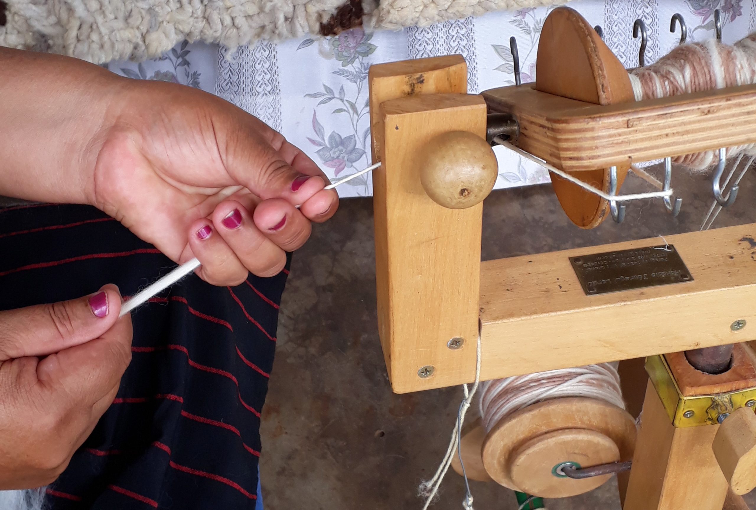 “Hace ya 6 años que trabajamos 8 mujeres en este taller Son 4 del municipio de Fachinal, que se dedican a los hilados, y otras 4 de Profundidad, que producen paños de fieltro y hacen el teñido”.