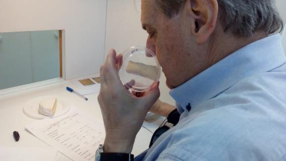 Ruiz Rivera dijo que los quesos camembert presentan su óptimo sensorial aproximadamente a los 45 días desde su elaboración. “Eso se determina a través del análisis sensorial, que es una disciplina científica que observa, mide, examina e interpreta cómo los cinco sentidos perciben determinadas características de un bien o servicio. Los paneles sensoriales, como los que contribuyeron a mi tesis, están integrados por personas entrenadas para realizar las pruebas y que describen los productos por medio de un conjunto de atributos. A partir de esos datos, se construye lo que se llama un perfil sensorial”.