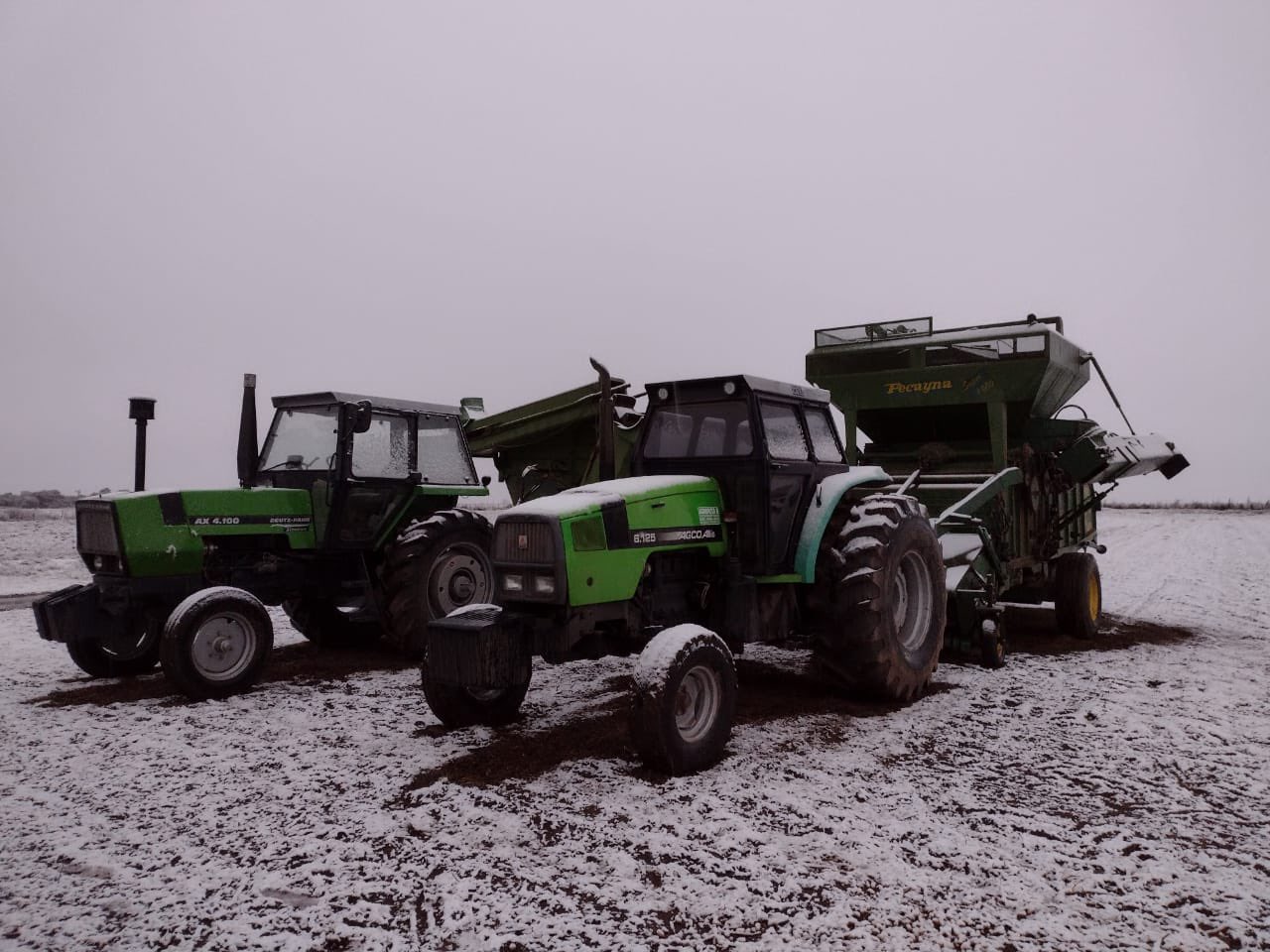Las imágenes de establecimientos agropecuarios nevados suelen ser usuales en el invierno del Medio Oeste estadounidense. Pero en la Argentina son una auténtica rareza.