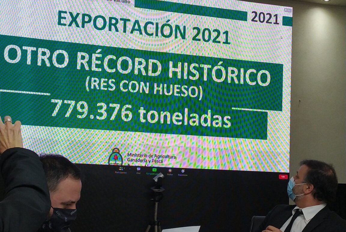 Enfrascado en este énfasis, Domínguez llegó a decir varias veces que la Argentina podría lograr “otro récord histórico” al cabo de este año, con 779.376 toneladas res con hueso exportadas. Luego moderó su mensaje y aclaró que se tratará de una “segunda” marca récord, detrás de las 903 mil toneladas de carne vacuna exportadas en 2020.