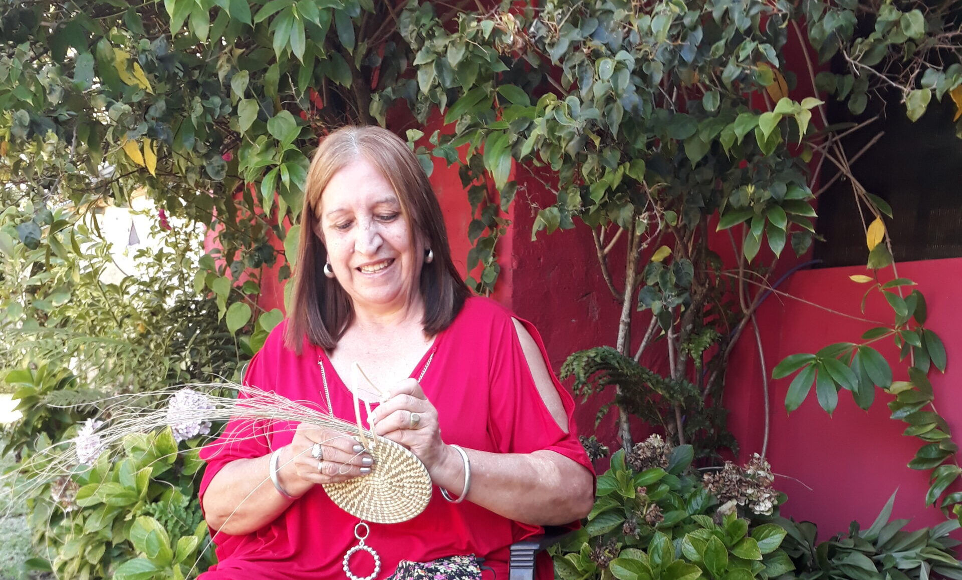 Nelly Cardozo nos recibe en el jardín de su casa en Concepción del Yaguareté Corá, en la región del Iberá de la provincia de Corrientes y a 150 kilómetros de la capital. Ella es una de las pocas artesanas que todavía se dedican a “coser” espartillo y palma para hacer posaplatos, bandejas, paneras, bolso, costureros y todo lo que su imaginación le vaya dictando. La aguja con la que cose es casera y está hecha con las varillas de los paraguas que van quedando viejos.