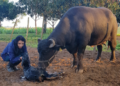 En medio de la sorpresa, uno de sus hijos le dijo: “Qué lindo sería criar búfalos, mamá”. Y ahí nomás la idea empezó a crecer en esta mujer que ahora acompaña los partos de las búfalas y se gana su confianzaa de manera tal que le permiten acercarse a sus crías como si nada.