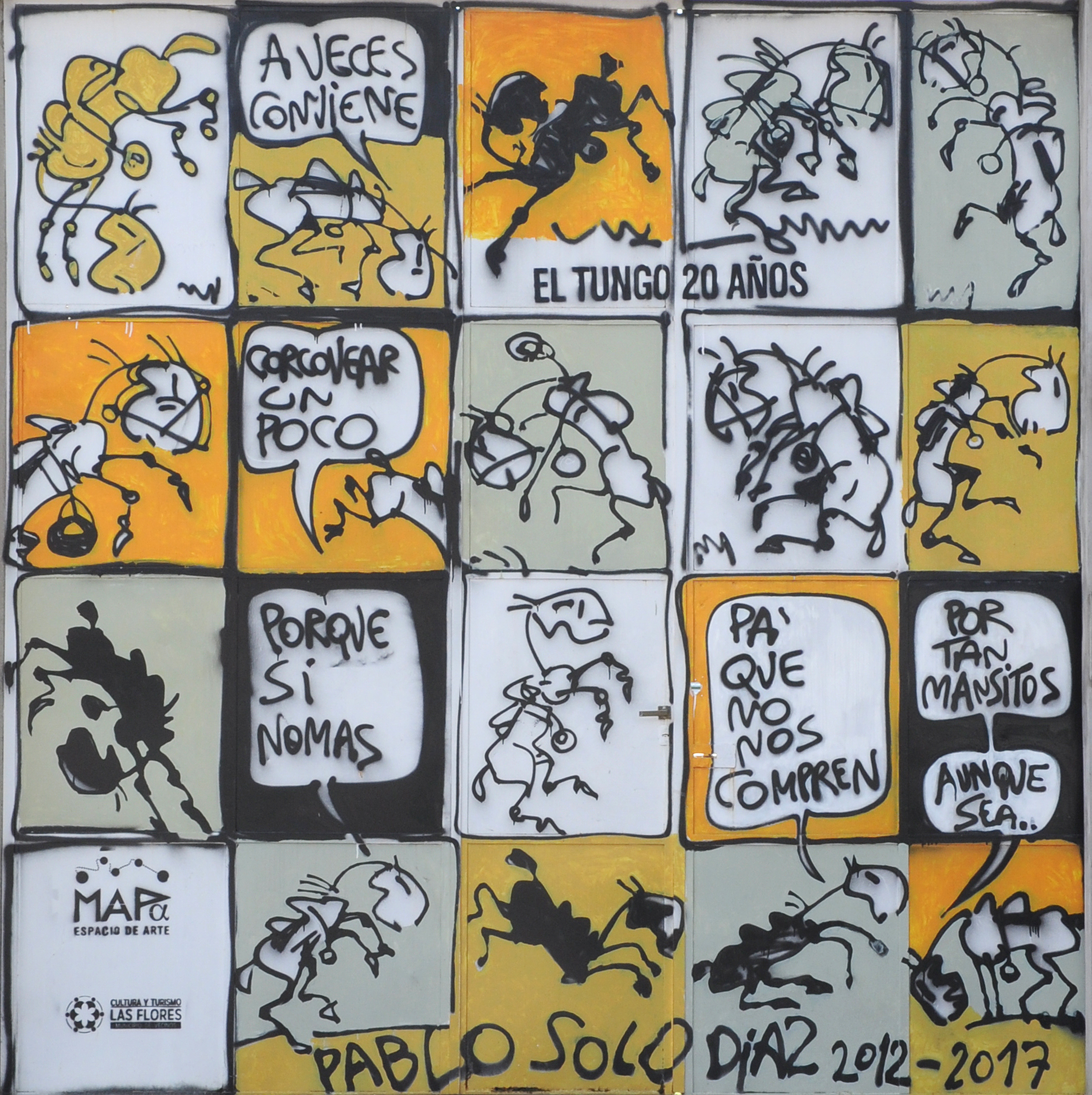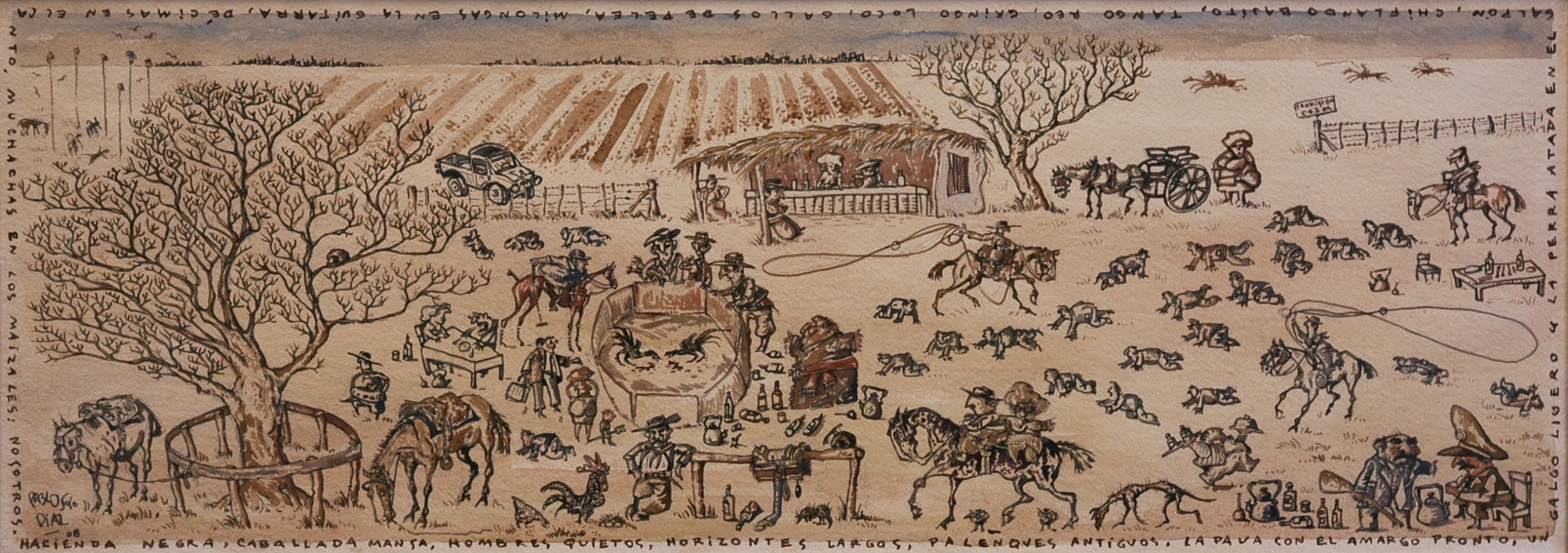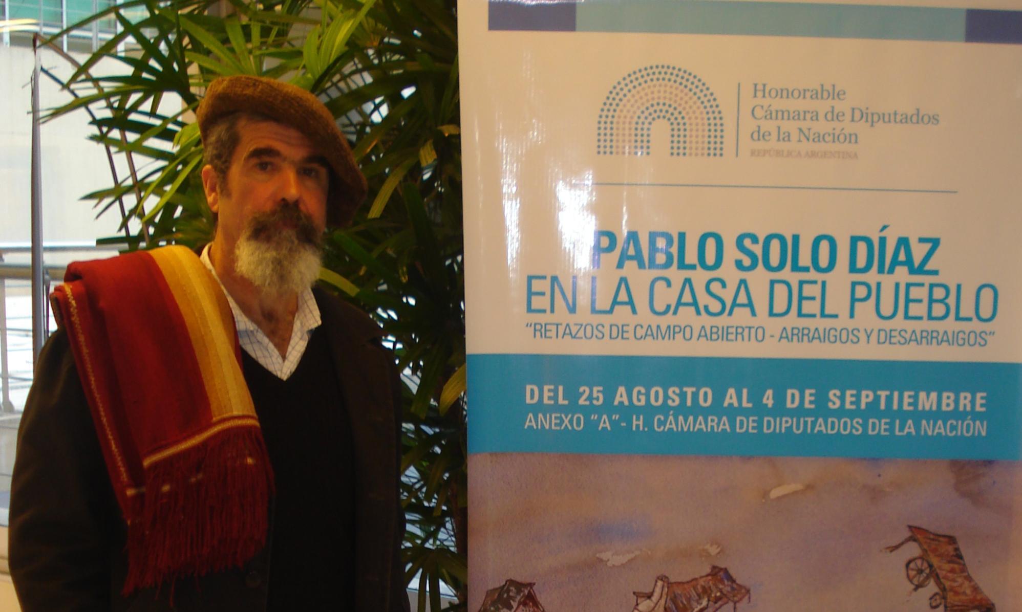 Pablo Solo Díaz es un artista múltiple: pintor, escritor, actor, payador… Y maestro. Y todo su trabajo está atravesado por la ruralidad. Vive en Las Flores, Buenos Aires, y su obra se ve en Mapa Espacio de Arte o en su muro personal.