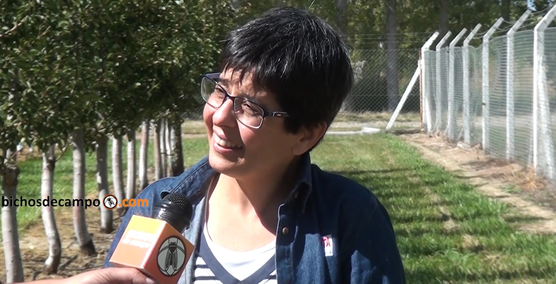 Paula recibe a Bichos de Campo en un lote custodiado por un alambrado olímpico con púas, que evita que algún extraño ingrese y puede llevarse del lugar materiales -variedades o clones- de manzanas y peras que aun no han sido liberados al mercado, y que tal vez no se liberen nunca.
