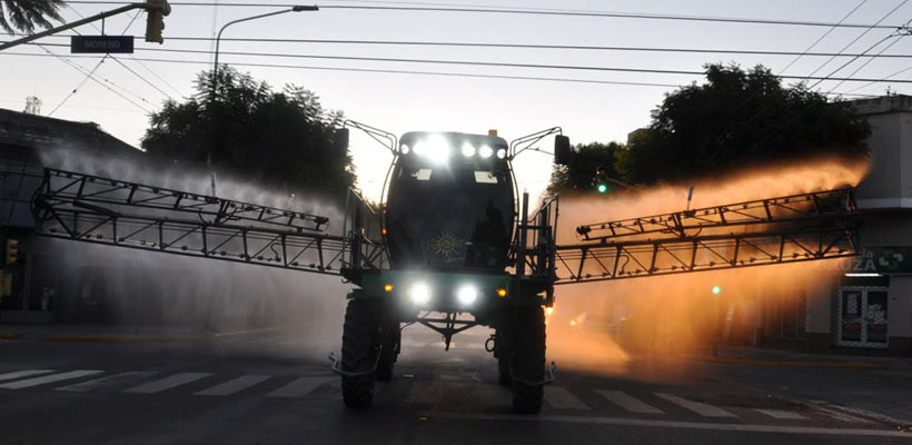 Por decisión del municipio de Pergamino, el sábado pasado en horas de la tarde noche, un equipo terrestre de agroquímicos ingresó a la ciudad y se paseó por la avenida principal. El mosquito, como se conoce vulgarmente a esas máquinas agrícolas, aplicó un desinfectante preventivo contra el Covid-19 en la vía pública. La decisión se tomó “para cuidar a los pergaminenses”, como informó el propio municipio en su cuenta de Twitter.