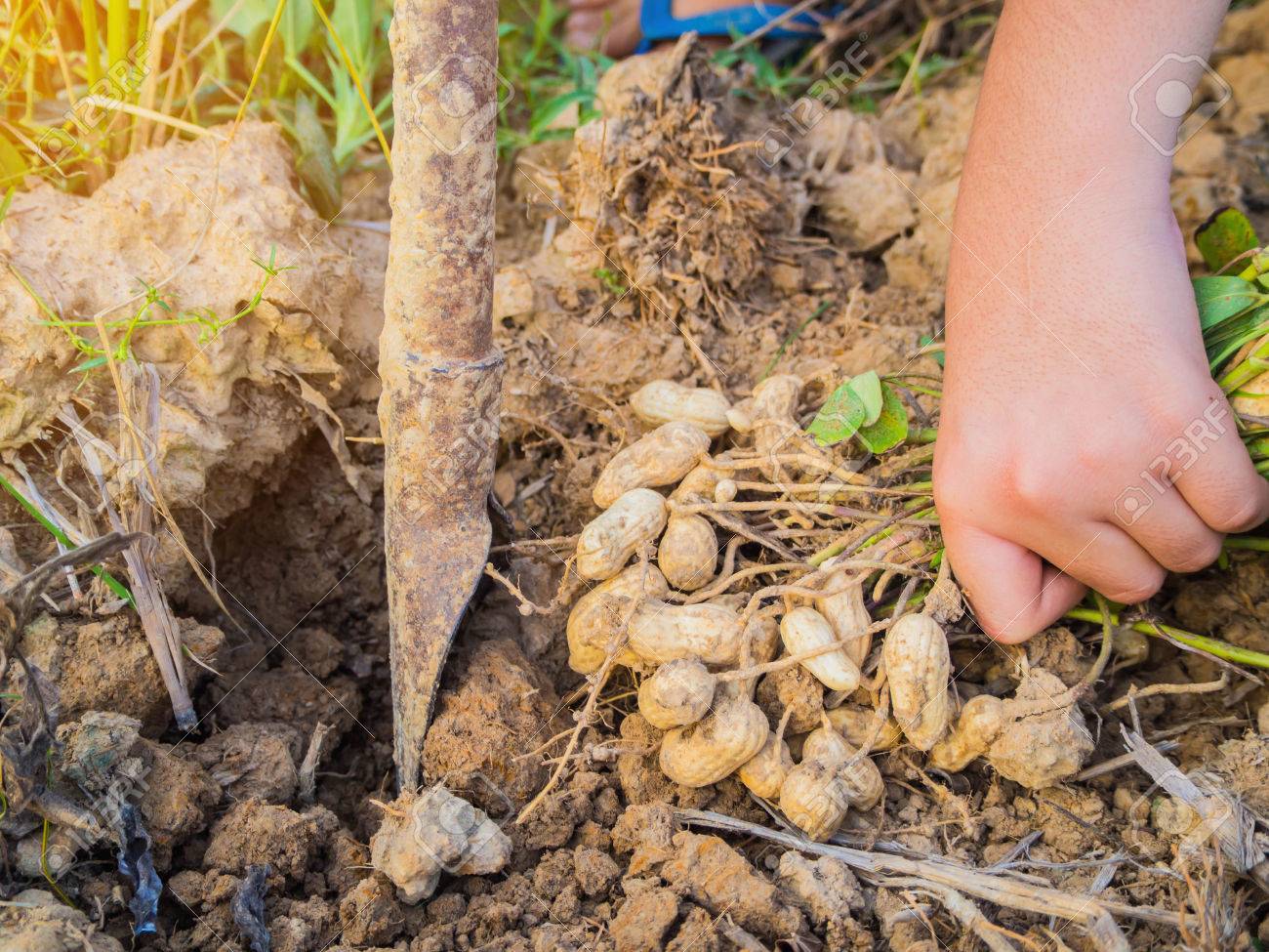 farmer harvest peanut on agriculture plantation, Harvest of Peanut Plants, Peanut fresh.