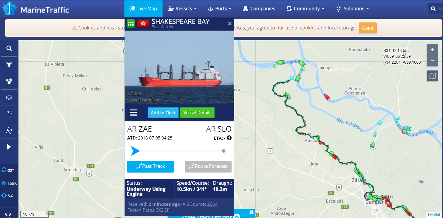 El barco carguero “Shakespeare Bay” ingresó este jueves 5 de julio a las barrosas aguas del río Paraná llevando 29.310 toneladas de porotos de soja. Raro que entre cargado, porque en general los buques graneleros de su tipo ingresan vacíos a la Hidrovía y salen llenos. Pero en este caso se trata del primer cargamento de soja importada desde los Estados Unidos que llega al país para poder mantener en funcionamiento las plantas aceiteras locales.