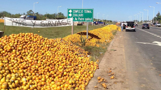 El sector citrícola viene atravesando una crisis continua y los productores vienen protestando con ‘frutazos’ en la ruta y hasta en la Plaza de Mayo. “La intención es paliar la situación de crisis prácticamente terminal que está viviendo esta cadena productiva”, explicó el senador entrerriano Pedro Guastavino, del bloque Justicialista.