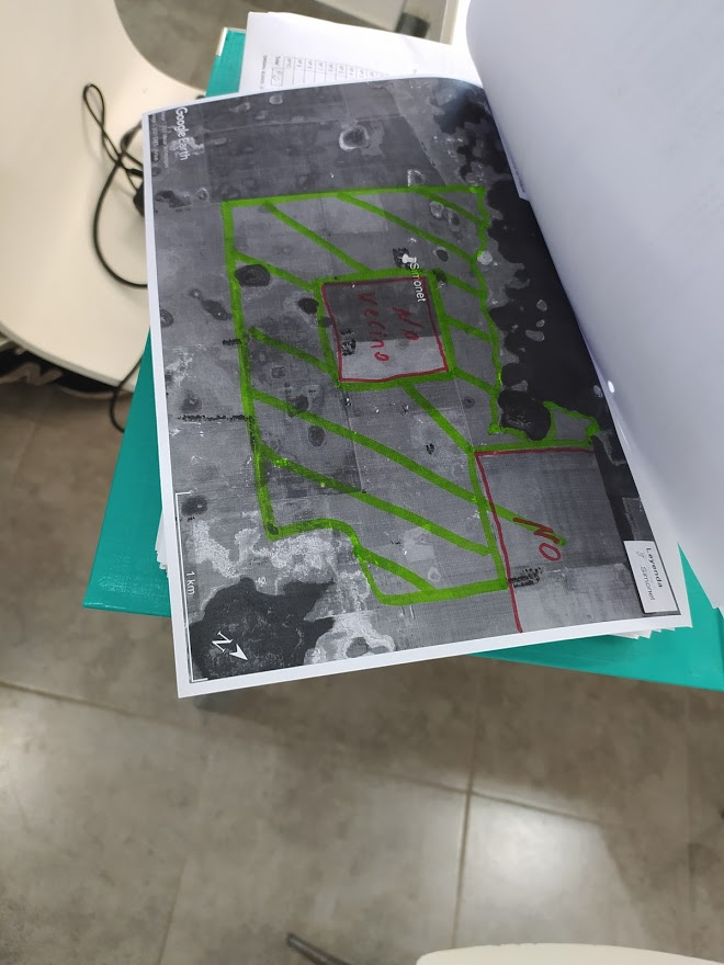 Si están dadas las condiciones climáticas, es decir que si no hay prácticamente nada de viento o el viento no sobrepasa los 30 kilómetros por hora de velocidad, Nazarena y Eceizabarrena diseñan y trazan el plan de vuelo encomendado por el cliente. Luego, en la fajina, el vuelo se puede seguir por celular y además queda todo queda registrado en la computadora.