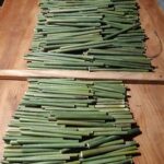 Una vez que la caña ingresa en el taller, se remueve la cáscara externa y se procede con el fraccionamiento. Luego del proceso de esterilización, que no emplea ningún producto químico, se las deja secar al sol. Al no hacer uso de ninguna máquina (para reducir la huella de carbono) y preservar el material, este proceso puede demorar entre dos y tres días, dependiendo del clima.