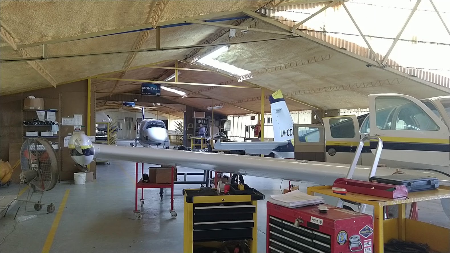 En Aerotec hacen eso: traen los fuselajes de una linea de aviones italiana muy reconocida en el mundo de la aviación y aquí los terminan con motores e instrumental que traen desde otros puntos del planeta, porque no hay fabricación nacional, todavía. Finalmente el 45% de la mano de obra de los aviones es nacional: unas 70 personas trabajan en la fábrica mendocina.