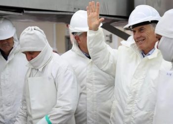 El presidente Mauricio Macri, lanzado ya a la campaña electoral por su reelección, visitó este miércoles una planta frigorífica de ...