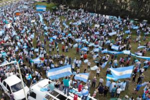 “La invitación a la gente fue de voz en voz, y terminamos juntando entre 300 y 400 personas, entre las cuales se sumaron gauchos a caballos. Todos separados, y con barbijos, nos formamos y asistimos al acto. Esa misma tarde, organizamos un bocinazo alrededor de la plaza del pueblo, para reclamar por nuestra democracia, por el respeto a las instituciones, a la propiedad privada y a los 3 poderes, el Ejecutivo, el Judicial y el Legislativo. Esas fueron nuestras consignas”, ratificó Urruti.