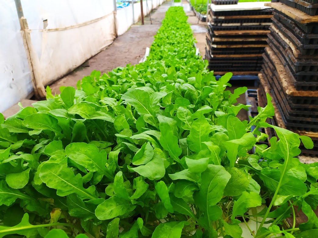Una lechuga tarda 70 días en crecer. Una rúcula menos, de 27 a 40 días dependiendo de la estación (en invierno le cuesta más, como a todos). No es que se logren tasas de crecimiento más rápidas que las de las verduras de hoja sembradas en la tierra, pero sí resulta todo mucho más práctico. Lo único tradicional es el arranque, con pequeños plantines que al adquirir un tamaño adecuado son trasplantados en las piletas.