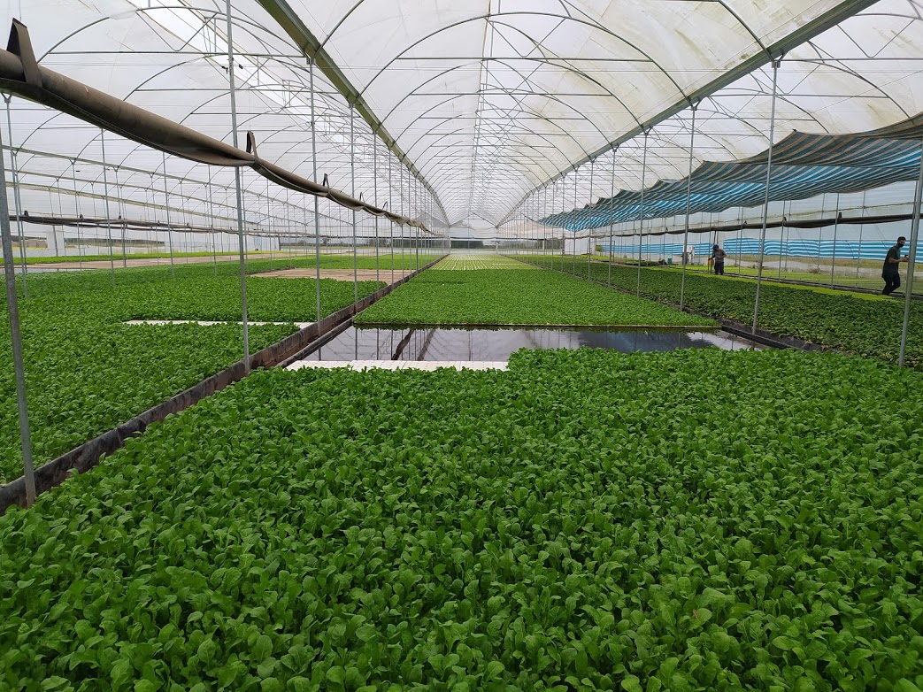 Luego de un concienzudo análisis de las diferentes opciones, el sistema que eligieron estos agrónomos para hacer hidroponia es diferente al tradicional del agua que circula por caños. Ellos montaron un invernadero con 12 mil metros cuadrados de piletas. No da para nada, apenas mojarse las patas. Tienen solo 24 centímetros de profundidad. Sobre esas piletas crecen robustas las verduras de hoja.
