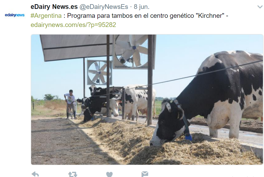 Como “tuit de la semana”, los Bichos de Campo elegimos éste del sitio especializado en lechería eDairy News, porque nos cuenta que el centro genético Néstor Kirchner, de la localidad cordobesa de Morteros, comenzará por lo menos a dar algunas capacitaciones a productores y tamberos de la zona.