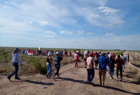 El productor agregó que si bien puede trabajar de un lado del campo lo hace bajo mucha presión por los constantes ataques que recibe de los ocupantes de la otra parcela. Relató: “Me cortan los 6 hilos de alambre cada 10 metros y el otro día me cortaron el agua que va a los molinos, hicieron un pozo de 3 metros hasta encontrar el caño, lo cortaron y lo taparon”.